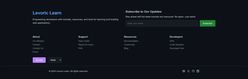 A high-quality, responsive footer template built for modern websites. Designed for developers, businesses, and enterprises, this footer provides a sleek, professional layout that adapts seamlessly across all devices.